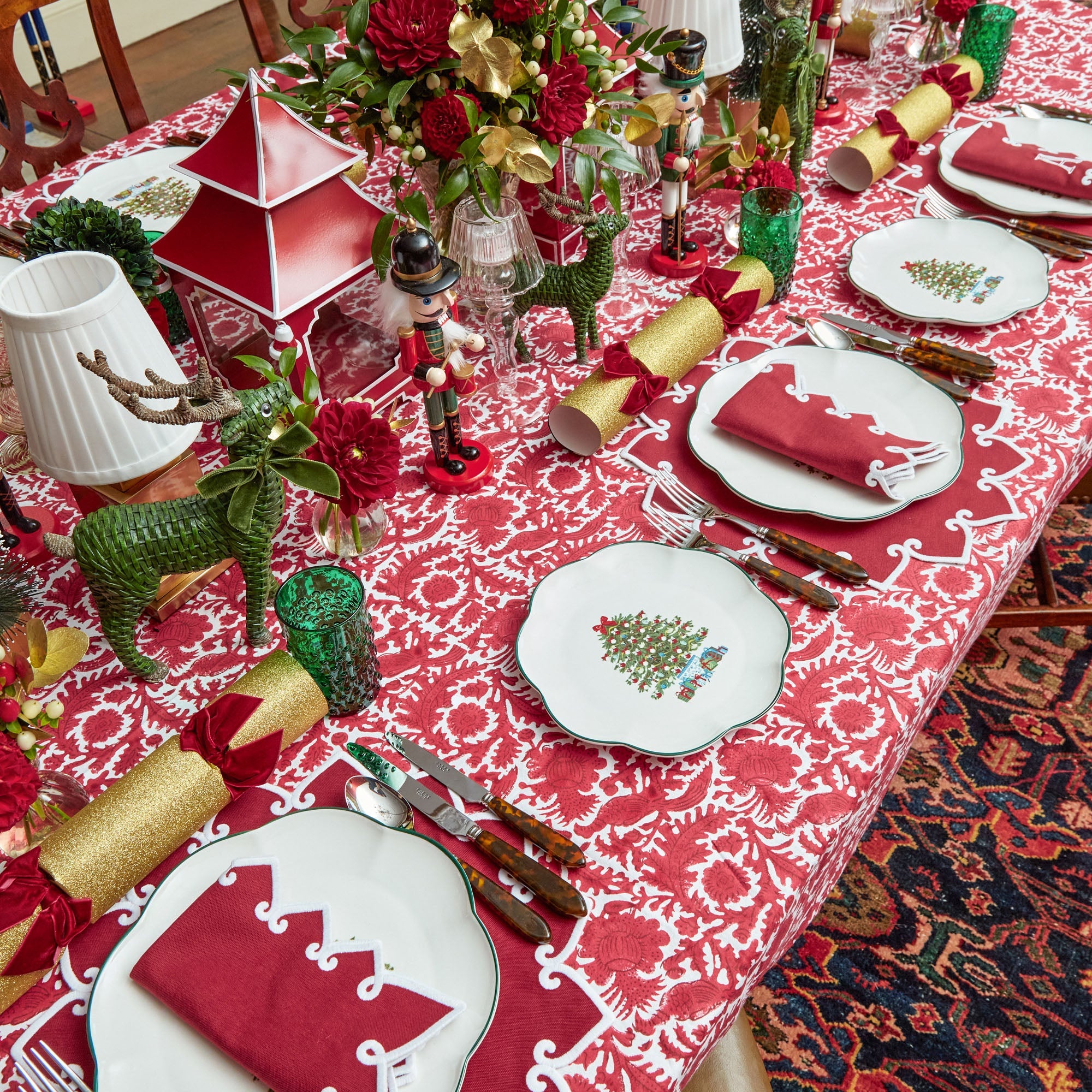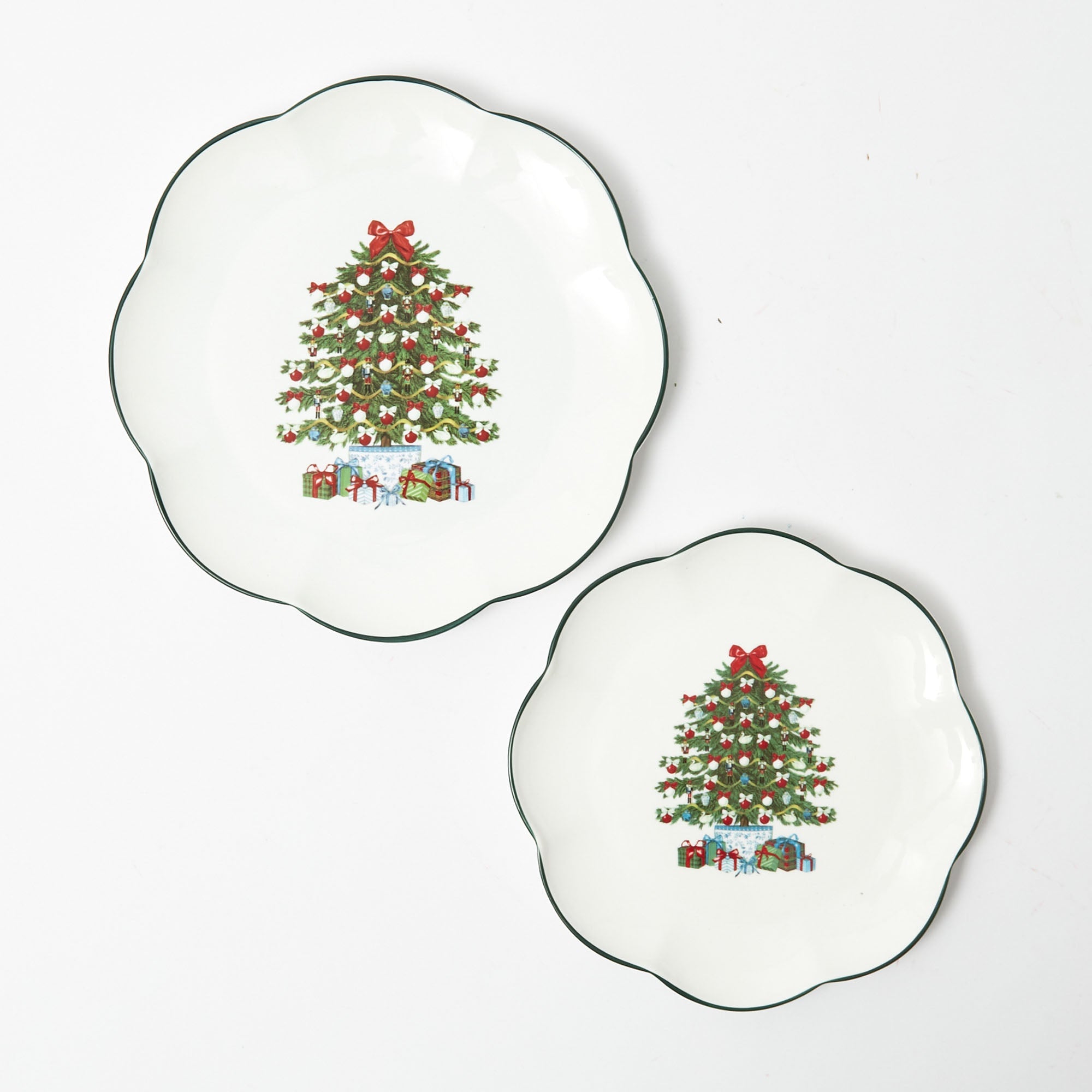 This quintessential festive Christmas Tree Dinner & Starter Plate Set features a pretty Christmas Tree in a chic chinoiserie planter.